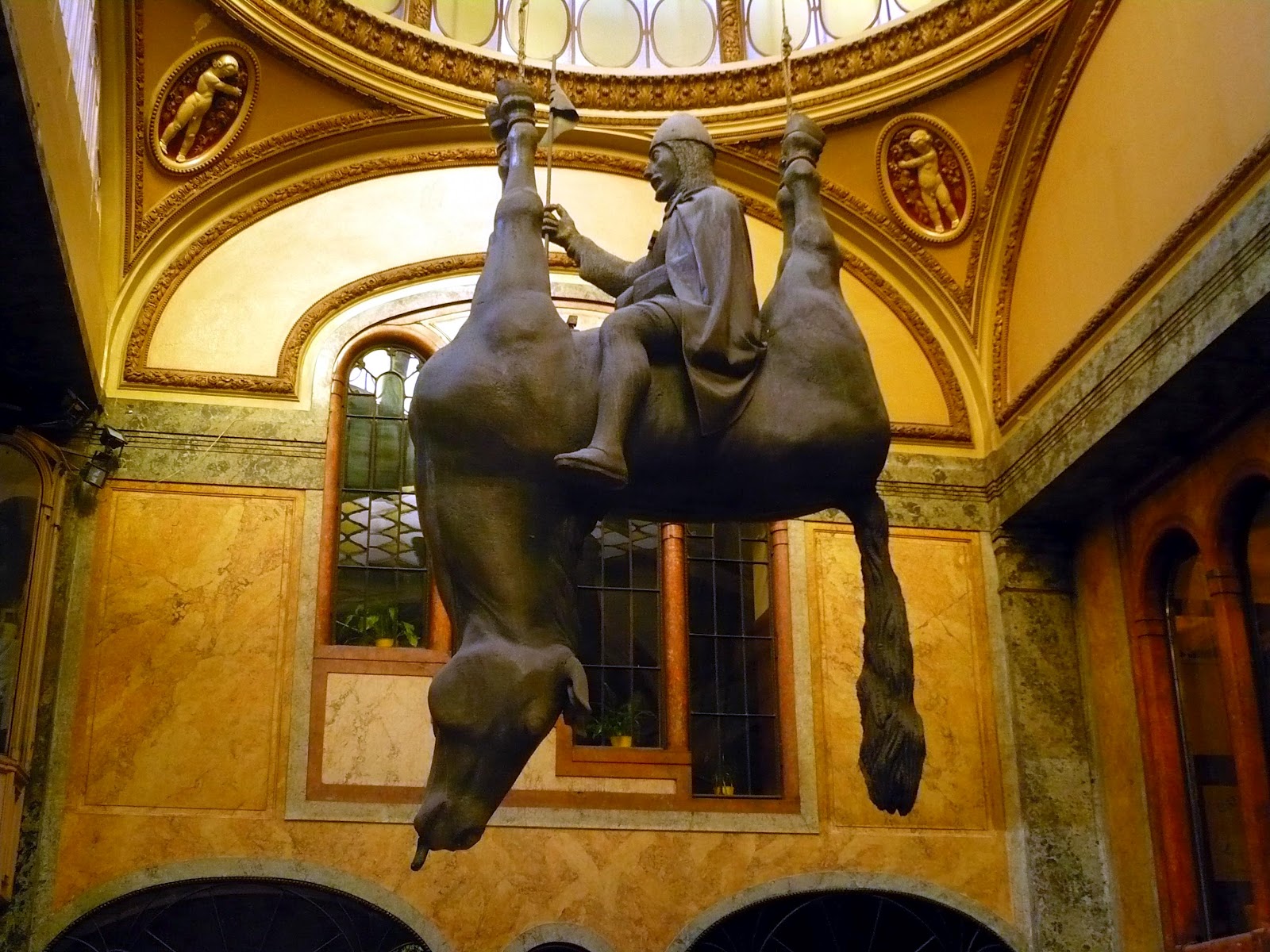 Lustro z wody przy Kalvin ter Widok ze schodów Muzeum Narodowego. Posępna 10 rano, idealne klimaty na zwiedzanie. Główna Hala Targ...